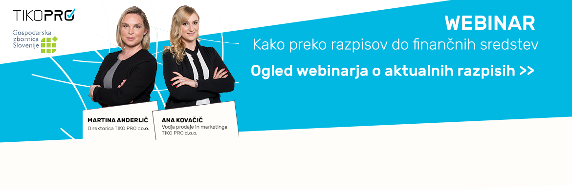 Na webinarju sta Martina Anderlič, direktorica Tiko Pro d.o.o. in Ana Kovačič, vodja prodaje in marketinga Tiko Pro d.o.o., predstavili aktualno stanje razpisov za podjetnike in odgovorili na vprašanje kako preko razpisov priti do finančnih sredstev.