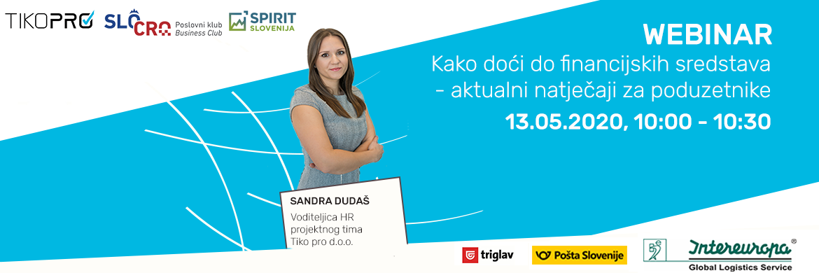Na spletnem seminarju, ki ga izvajamo v sodelovanju s SLO-CRO poslovnim klubom, bo Sandra Dudaš, vodja projektne skupine Tiko Pro Hrvaška, predstavila trenutne razpise za podjetnike in odgovorila na vprašanje, kako priti do finančnih sredstev prek razpisov: