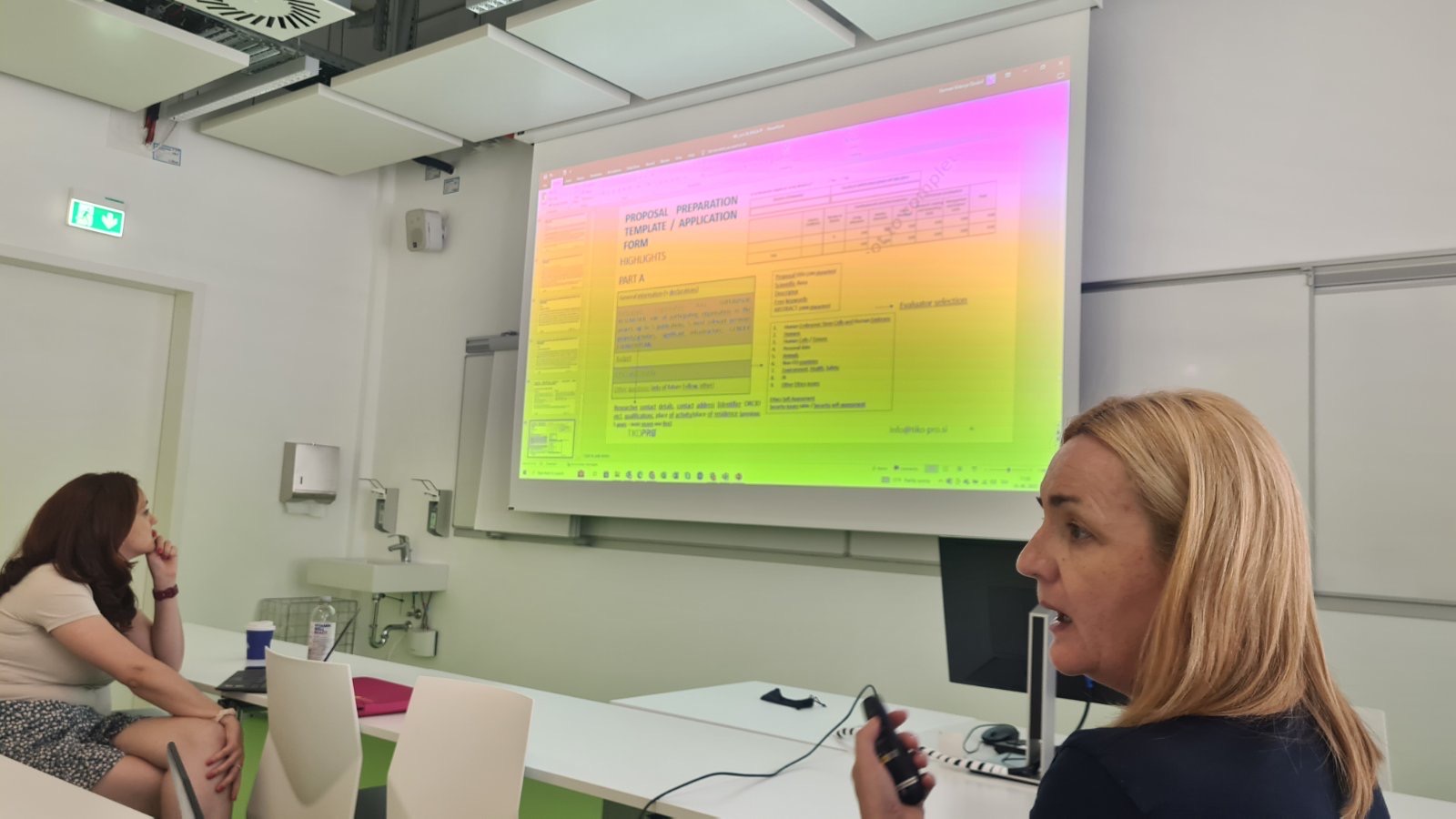Naša vodja projektov, Karmen Vidonja Ozvatič, je vodila izredno zanimivo in informativno predstavitev programa Marie Curie. Raziskovalcem smo predstavili, kako lahko najdejo pravi projekt zase ter kakšna je pot za uspešno prijavo na razpis.