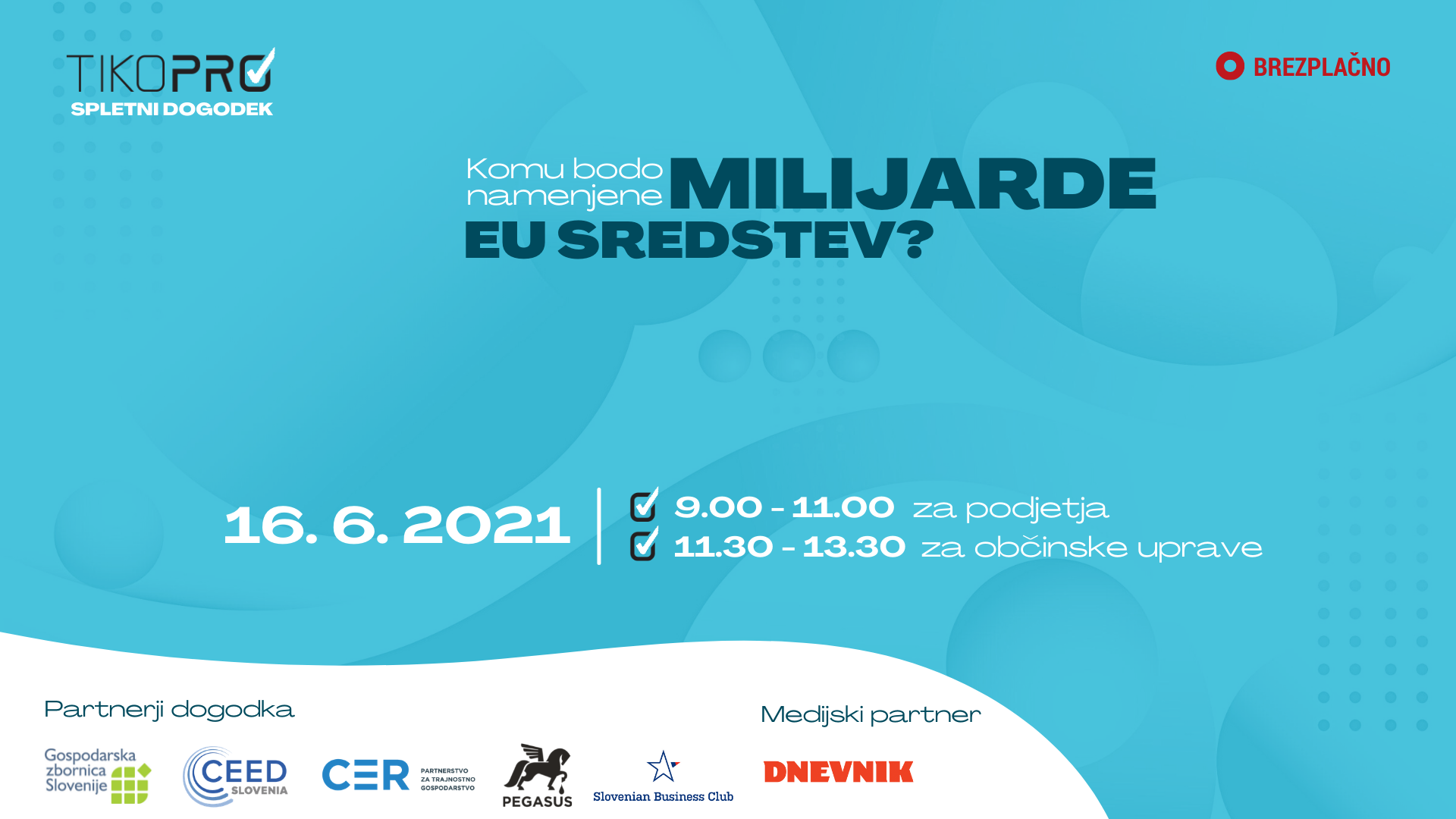 Po našem uspešno izvedenem dogodku v novembru, ko nas je v živo spremljalo več kot 1300 podjetnikov, vas vabimo na: 2. spletni strokovni dogodek Tiko pro: »Komu bodo namenjene milijarde EU sredstev?«