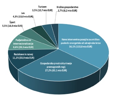 • spodbujanje lesno predelovalne industrije –13,0 milijona evrov oziroma 4,3 %;